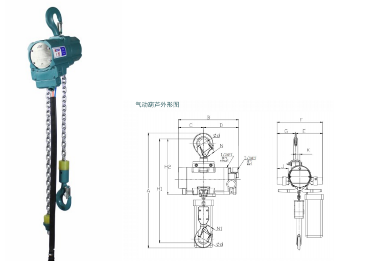 滬工工業用掛鉤式氣動葫蘆參數: